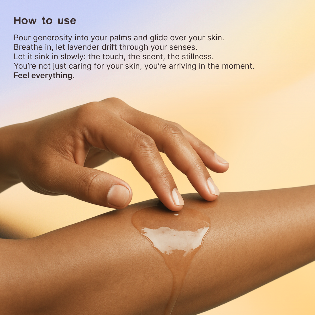 Apply Wild oil as part of your daily ritual — after a bath, before bed, or whenever your body asks for care. Massage onto damp skin for lasting hydration or smooth through hair ends for effortless shine.